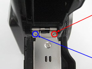 Entre los productos con los números de serie descritos anteriormente, el problema ya ha sido corregido si se observa una marca en el lado de la lente en el interior de la cubierta de la batería como se muestra en la siguiente imagen. Puede seguir utilizando la cámara “tal como está” sin necesidad de realizar alguna acción.